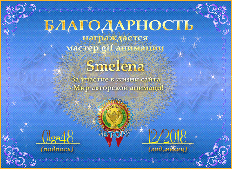 Главная » Награды » НАГРАДЫ АВТОРОВ » Smelena